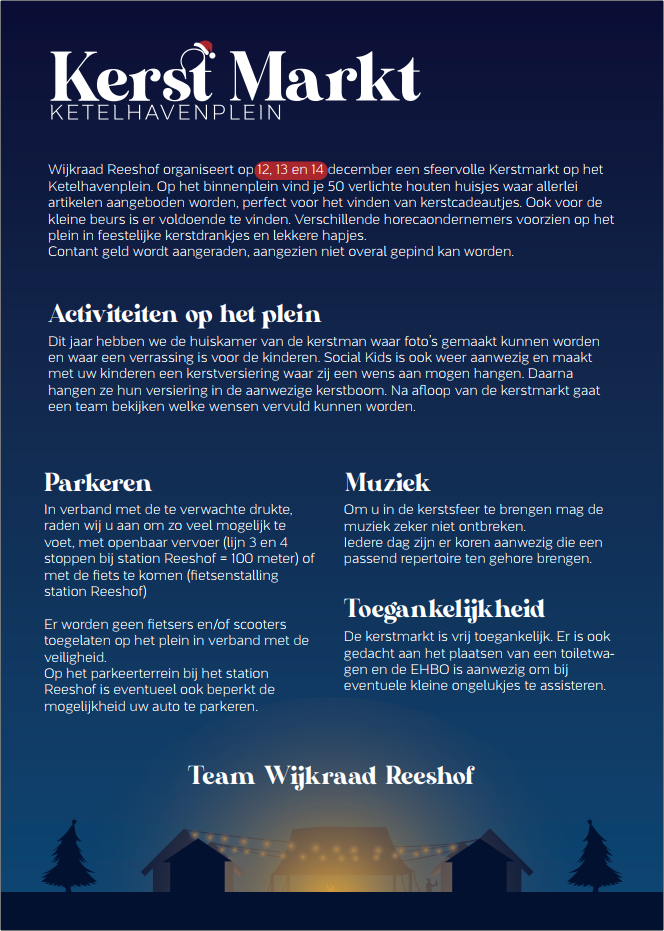 De huisjes kunnen volledig worden afgesloten en er is zowel overdag als in de avond en ‘s nachts continue beveiliging aanwezig. De kerstmarkt zal bovendien het gehele weekend doorlopend omlijst worden met zang en muziek. Dit alles vindt plaats binnen de omsloten en intieme setting van het Ketelhavenplein.